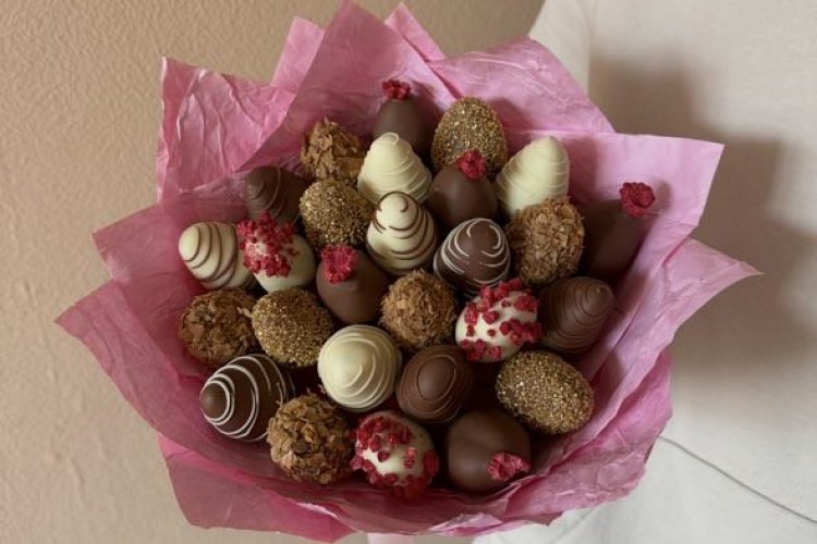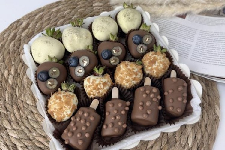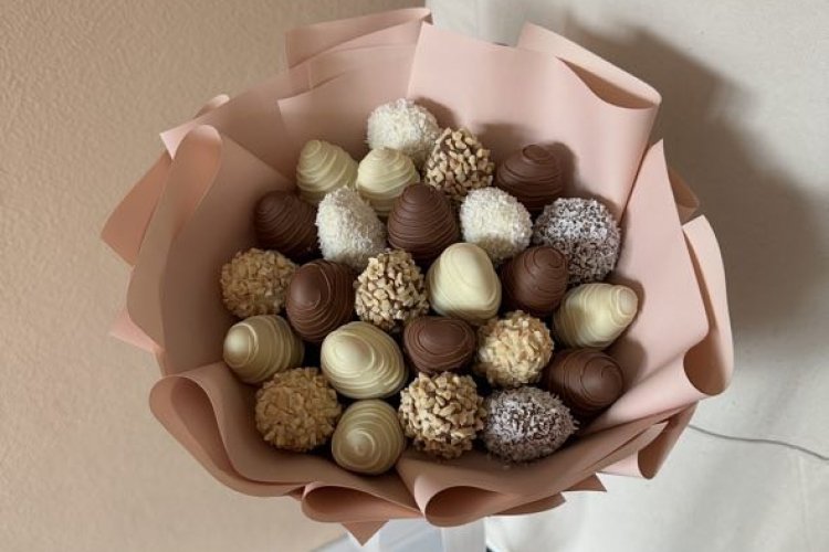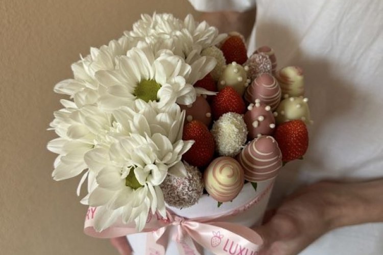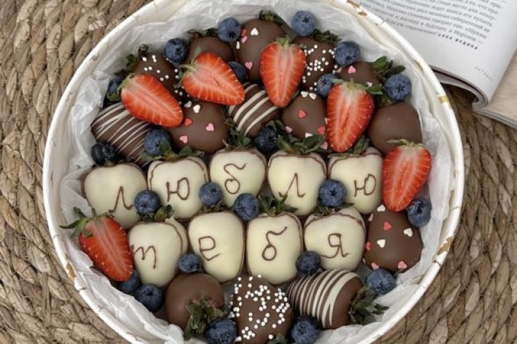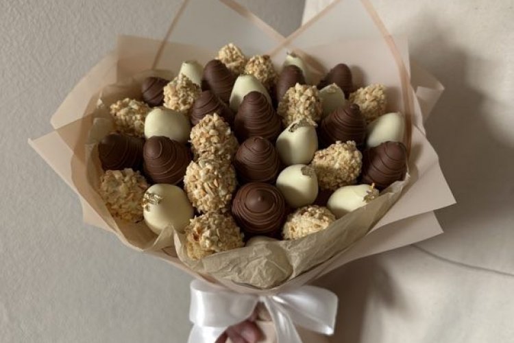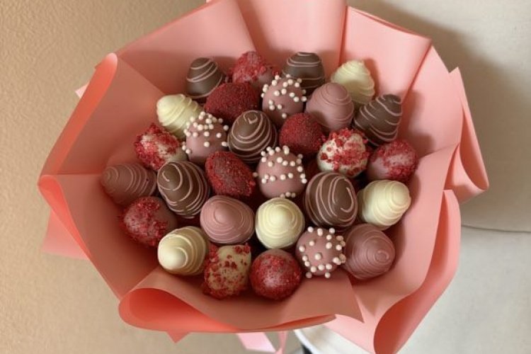 Сладкие, яркие и нежные ягоды, покрытые шоколадом, собираются в впечатляющий букет, готовый удивить избранницу, близкого человека или коллегу..